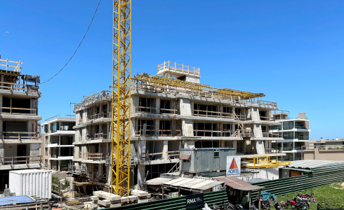 Actualmente, cuenta con un avance de 63% en lo que respecta a albañilería y estructura de hormigón, donde solo resta la losa sobre acceso principal. Barreto acota que en esta etapa “se trabaja en fachadas, revestimientos y pavimentos de baños y cocinas, revoques interiores en los últimos niveles, terrazas de servicio y principales, parrilleros individuales pisos 4 y 5, instalaciones sanitaria y eléctrica, montaje de ascensores y se comenzó a colocar las aberturas de aluminio”.